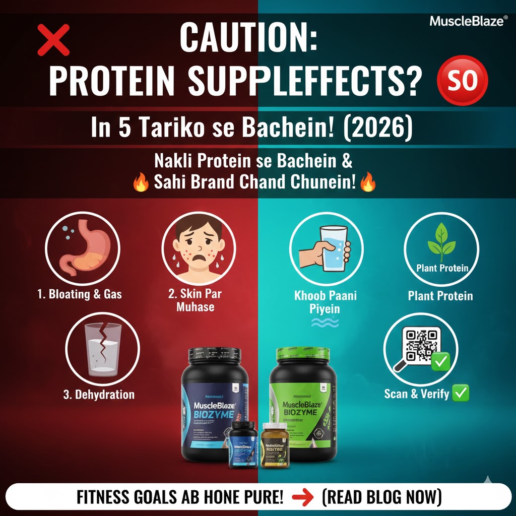 Nakli Products ka Khatra: India mein Fake Protein sabse bada side effect hai. Isme steroids ya heavy metals ho sakte hain jo liver ko damage karte hain. β